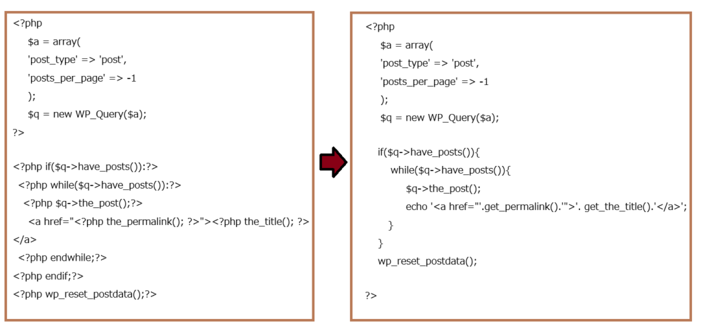 wordpressのPHP記述でHTMLとごちゃ混ぜにコロンとか使うやつ苦手・・